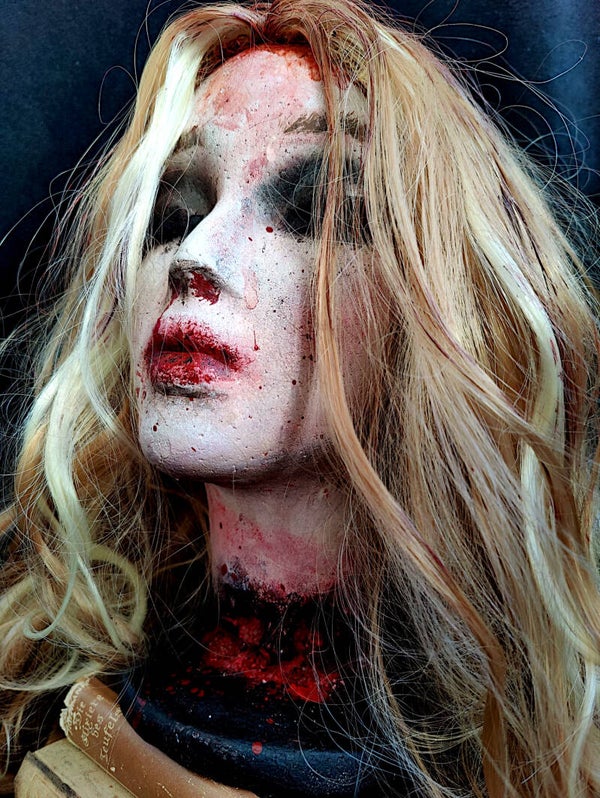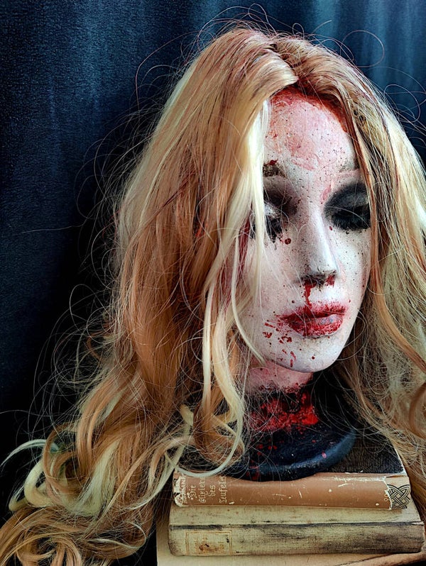 Abgetrennter blutiger Frauenkopf
